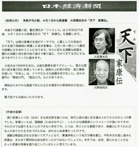 4月1日からの日本経済新聞夕刊小説の新連載「天下家康伝」の挿絵を美術領域 大野俊明教授が担当します。