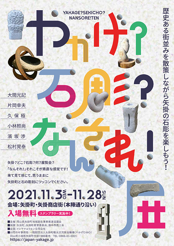 松村晃泰 非常勤講師が「やかげ?石彫?なんそれ!展」を企画しました。この展覧会は、2021年11月3日(水)~28日(日)まで、矢掛商店街 各所にて開催され、松村晃泰 非常勤講師も作品を出品します。