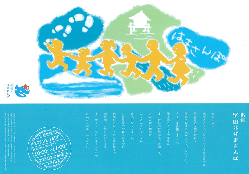 2021年2月16日(火)〜2月26日(金)まで、成安造形大学【キャンパスが美術館】バスストップギャラリーにて「堅田*はまさんぽ」の活動を紹介する報告展「出張 堅田*はまさんぽ」を開催します。 准教授の馬場晋作がコーディネートし、学生たちが企画運営している「堅田*はまさんぽ アートプロジェクト2020」によるものです。
