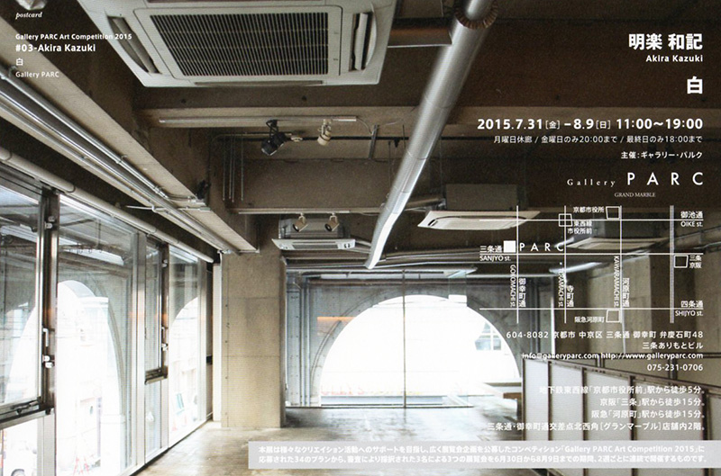 7月31日(金)~8月9日(日)までGallery PARCにて、構想表現クラス卒業生 明楽和記さんが個展を開催されます。