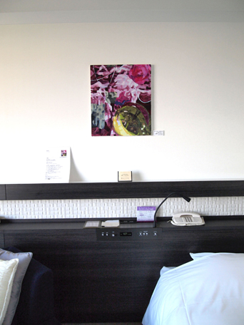 ホテルグランヴィア大阪と京都市立芸術大学とのコラボレーションにより、注目の若手作家の作品を客室に展示した26階グランヴィアフロア「憩~いこい~」。このプロジェクトに美術領域 教務員 藤井俊治(2007年洋画コース卒業)が作品展示しています。