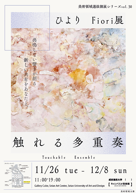 2024年11月26日(火)~12月8日(火)まで、成安造形大学【キャンパスが美術館】ギャラリーキューブにて、美術領域選抜個展シリーズ vol.50 北山ひより Fiori個展「触れる多重奏」を開催いたします。