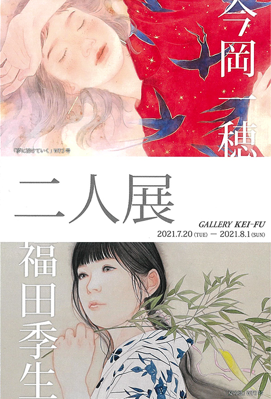 2021年7月20日(火)~8月1日(日)まで、ギャラリー恵風にて、日本画コース卒業生の今岡一穂さんがグループ展「今岡一穂・福田季生二人展」を開催されます。