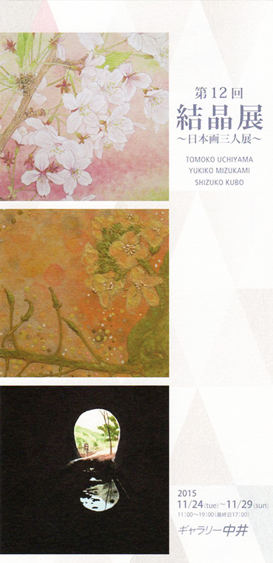 2015年11月24日(火)~11月29日(日)まで、ギャラリー中井にて行われる「第12回 結晶展~日本画三人展~」に成安造形短期大学 卒業生の内山知子さん、久保詩津子さんが出品されます。