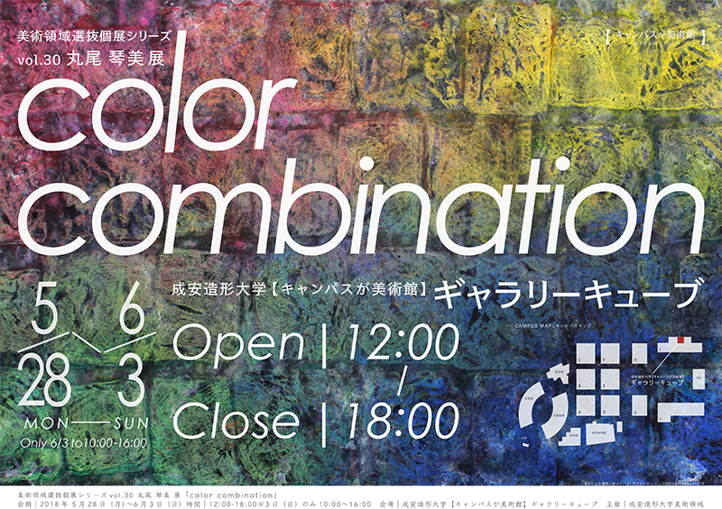 2018年5月28日(月)〜6月3日(日)まで、本学の【キャンパスが美術館】ギャラリーキューブで『美術領域選抜個展シリーズvol.30 丸尾琴美展 「color combination」』を開催しています。