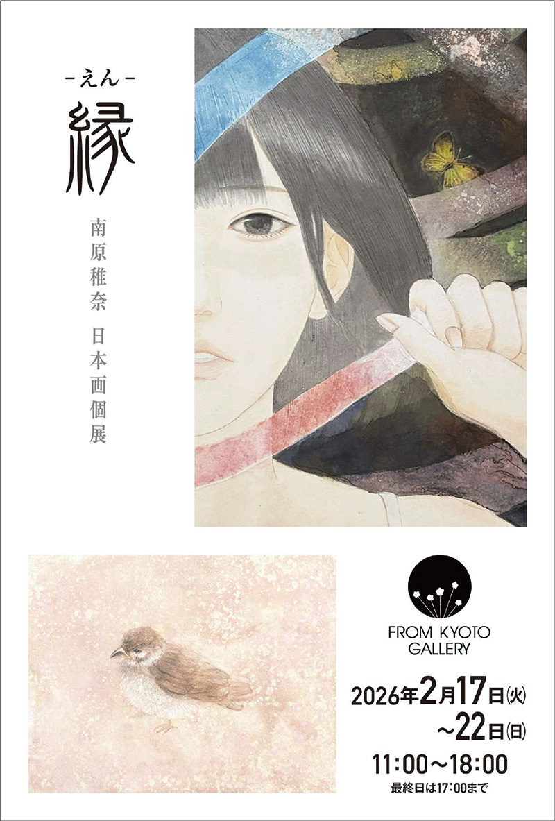 2026年2月17日(火)から2月22日(日)までFROM KYOTO GALLERYにて、日本画コース卒業生の南原稚奈さんが個展「-縁-」を開催されます。