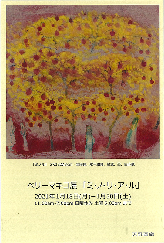 2021年1月18日(月)~1月30日(土)まで、天野画廊にて日本画クラス卒業生ベリーマキコさんが個展を開催されます。