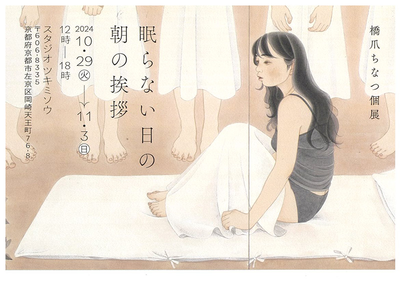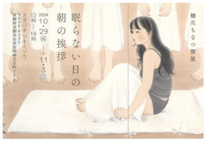 2024年10月29日(火)〜11月3日(日)までスタジオ ツキミソウにて、日本画コース卒業生の橋爪ちなつさんが個展「眠らない日の朝の挨拶」を開催されます。
