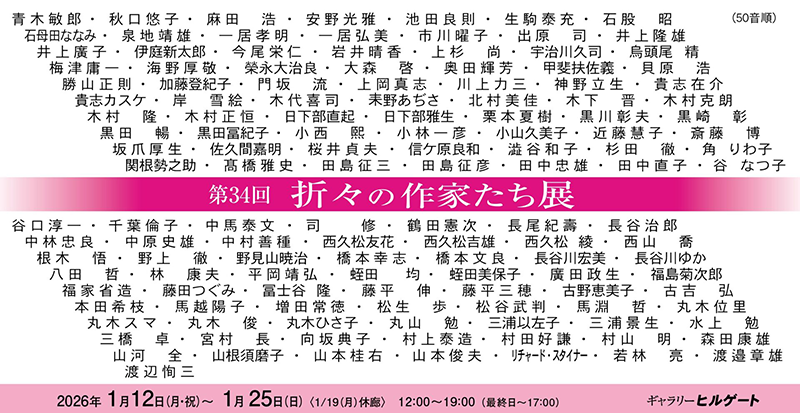 2026年1月12日(月)~1月25日(日)まで、ギャラリーヒルゲートにて行われる「第34回 折々の作家たち展」にて、西久松吉雄 客員教授が出品されています。