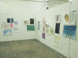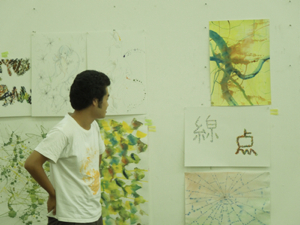 授業後半には出来上がったドローイング作品を壁面に展示して合評します。