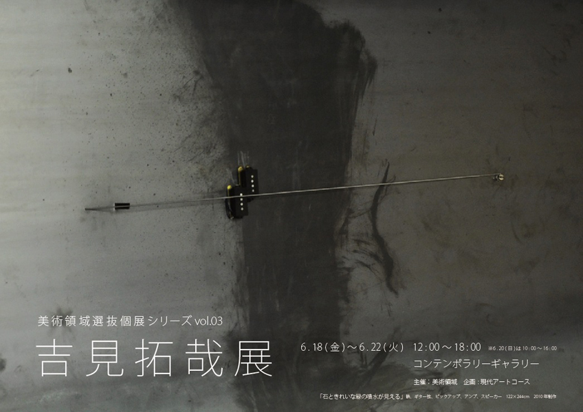 美術領域選抜個展シリーズ vol.03 吉見拓哉|現代アートコース4年 2010年6月18日(金)~6月22日(火) 本学コンテンポラリーギャラリー(現 ギャラリーキューブ) 企画|現代アートコース
