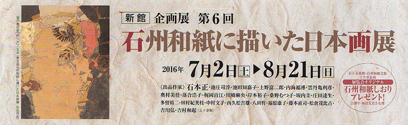 2016年7月2日(土)~8月21日(日)まで、石正美術館にて行われる「石州和紙に描いた日本画展」におきまして、美術領域 西久松吉雄教授が出品します。