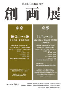2021年10月24日(日)~10月30日(水)まで東京都美術館、髙田学 准教授、西久松吉雄 非常勤講師の作品のみ11月9日(火)~11月14日(日)まで岡崎公園・京都市京セラ美術館で展示されます。