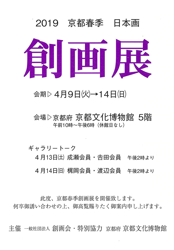 2019年 4月9日(火)〜4月14日(日)まで、京都府 京都文化博物館 5階で展示が行われます。