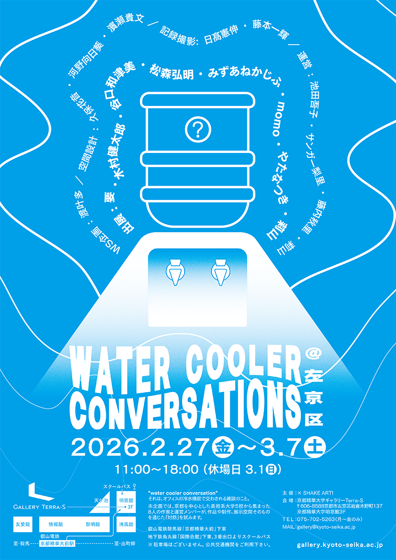 2026年2月27日(金)〜3月7日(土)まで、京都精華大学ギャラリーTerra-Sにて開催される「WATER COOLER CONVERSATIONS @左京区」に洋画コース3年生の要さんと現代アートコース3年生のみずあねかじふ さんが出展されます。