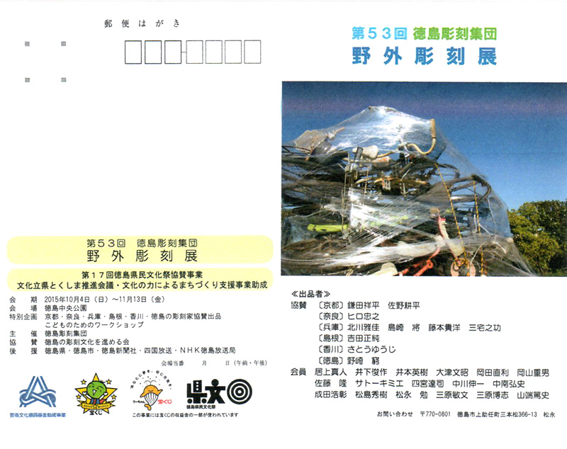 2015年10月4日(日)〜11月13日(金)まで徳島中央公園にて行われる「第53回 徳島彫刻集団 野外彫刻展」に、造形ラボ助手 佐野耕平が出品します。